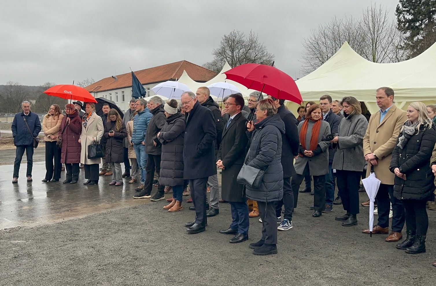 Der Niedersächsische Ministerpräsident Stephan Weil und der Niedersächsische Minister für Wissenschaft und Kultur Falko Mohrs nutzten den symbolischen Spatenstich für einige Grußworte und hoben die Bedeutung dieser Baumaßnahmen für die Weiterentwicklung der Universitätsmedizin in der Region hervor.