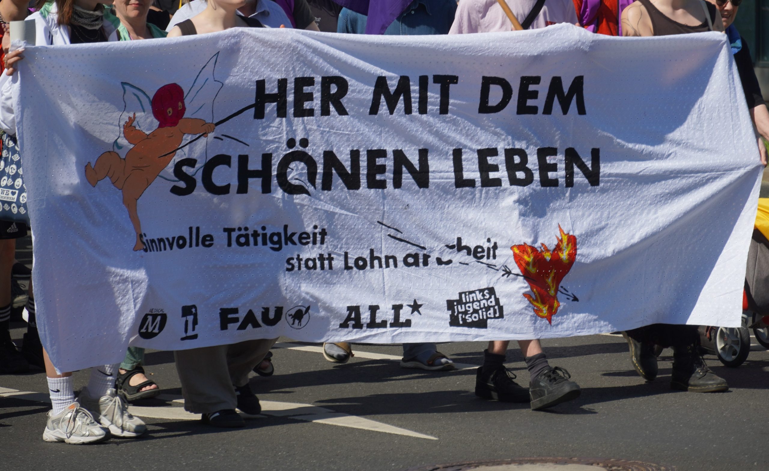 Bunter Protest bei der 1.Maidemonstration in Göttingen. Ca. 2.000 Menschen haben sich gestern an der[…]