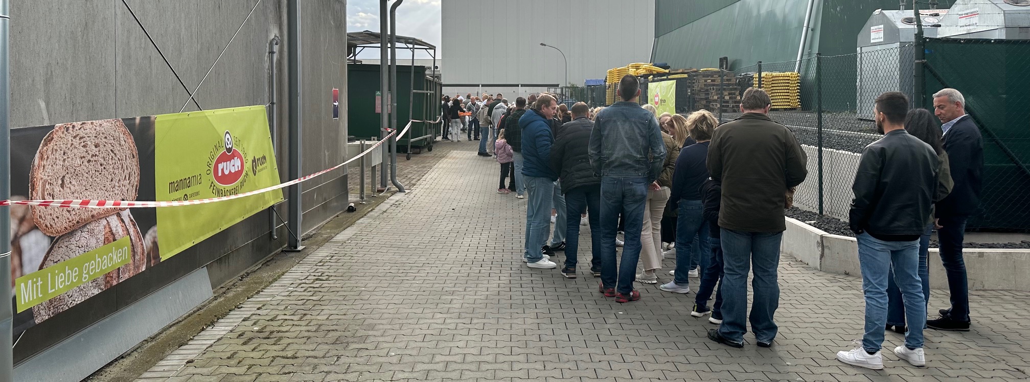 Es hatte schon Volksfestcharakter, die „Nacht des Backens“, veranstaltet von der Feinbäckerei Ruch an ihrem Produktionsstandort in Rosdorf. Auf dem Firmengelände herrschte großes Gedränge, alle bereitgestellten Biertischgarnituren waren besetzt. Lange Schlangen an den Getränke- und Esständen. Den größten Andrang gab es bei der Bäckereiführung. Nach dem Anlegen von Schutzkleidung konnte man sich ein Bild von der Produktion machen.