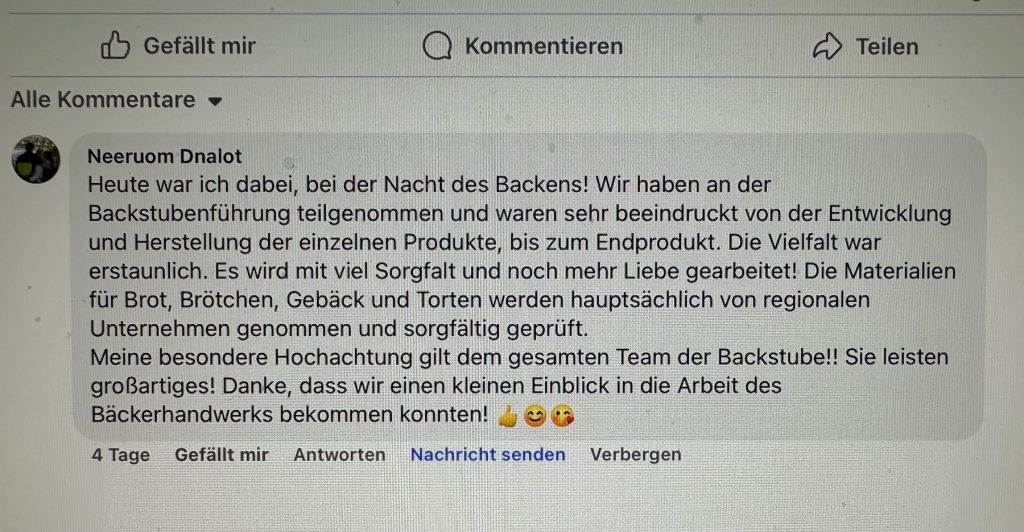 Das es den Gästen sehr gefallen hat, zeigt ein Kommentar auf unseren Facebookseiten: