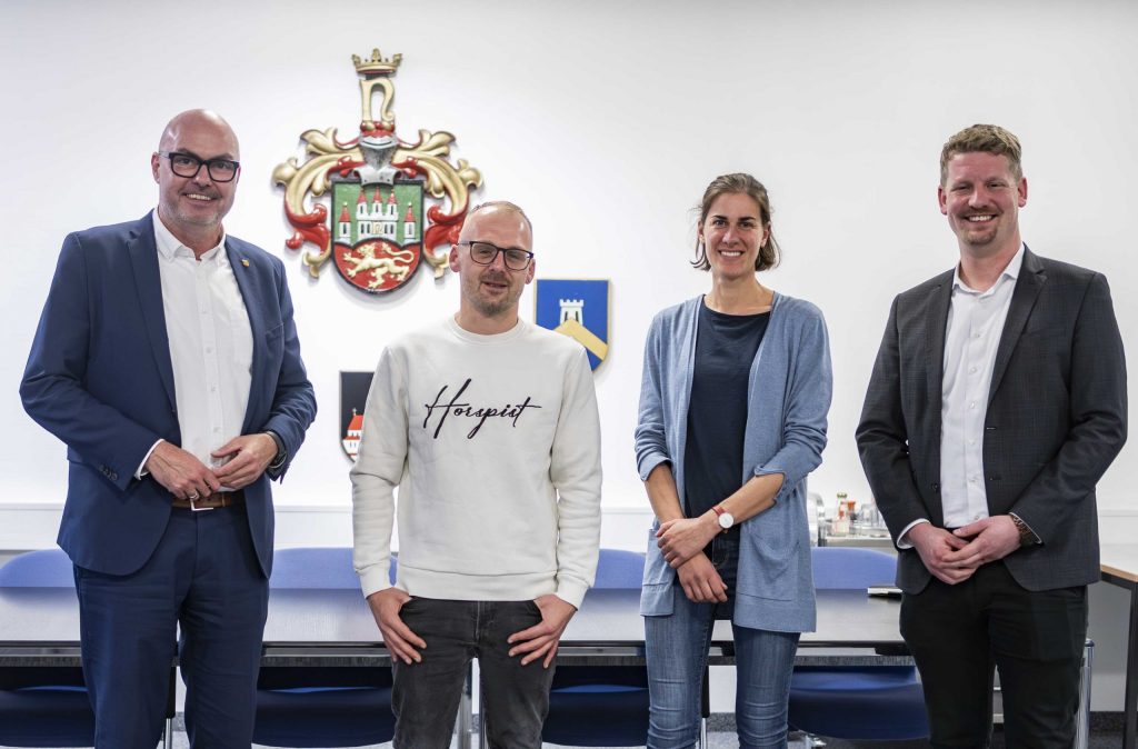 Foto (von links): Bürgermeister Simon Hartmann, Jan Lachnit und Inga Hartmann von der Bürgerinitiative „Pro Leinetal“ und Michael Eilers-Turau, Geschäftsführer der Northeimer Gesellschaft für Wirtschaftsförderung, Marketing und Tourismus mbH (NOM WMT).