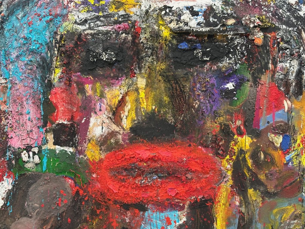Was hier zu sehen ist, ist radikal gegenwärtig: Alle Arbeiten sind neu, viele erst wenige Tage alt, direkt aus dem Atelier in Paris nach Göttingen gebracht. Die Farbe ist frisch, die Geste unmittelbar. Und doch ist da eine Tiefe, die weit zurückreicht. Dines Kunst speist sich aus Erinnerung – aus Kindheit, aus Arbeit, aus Dingen. Werkzeuge, Holz, Metall: Spuren einer Biografie, die in der Autowerkstatt des Vaters in Cincinnati begann und sich heute in komplexen Bildkörpern fortsetzt. Diese Arbeiten sind keine bloßen Gemälde mehr. Rohre, Kupferteile, Holzfragmente treten aus der Fläche hervor, greifen in den Raum. Es sind Hybridformen – zwischen Bild und Skulptur, zwischen Geste und Konstruktion. Kunst, die sich nicht begnügt, betrachtet zu werden.